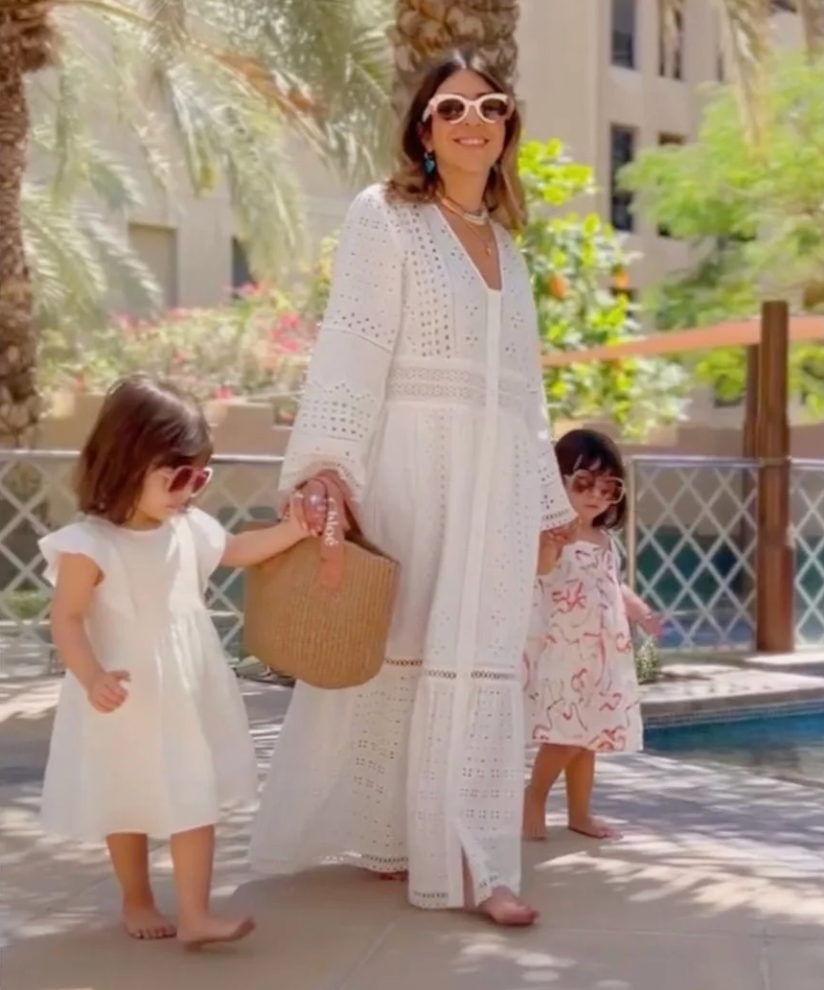 When it came to packing the perfect beach bag, we knew that table-scape artist and mother of three, Léa Sfeir would have all the answers. Not only is this Parisian in Dubai impeccably stylish but regular trips to the beach with her two-year-old twin girls Gaïa and Marie and six-year-old son Adam mean she has the inside track on seaside essentials.